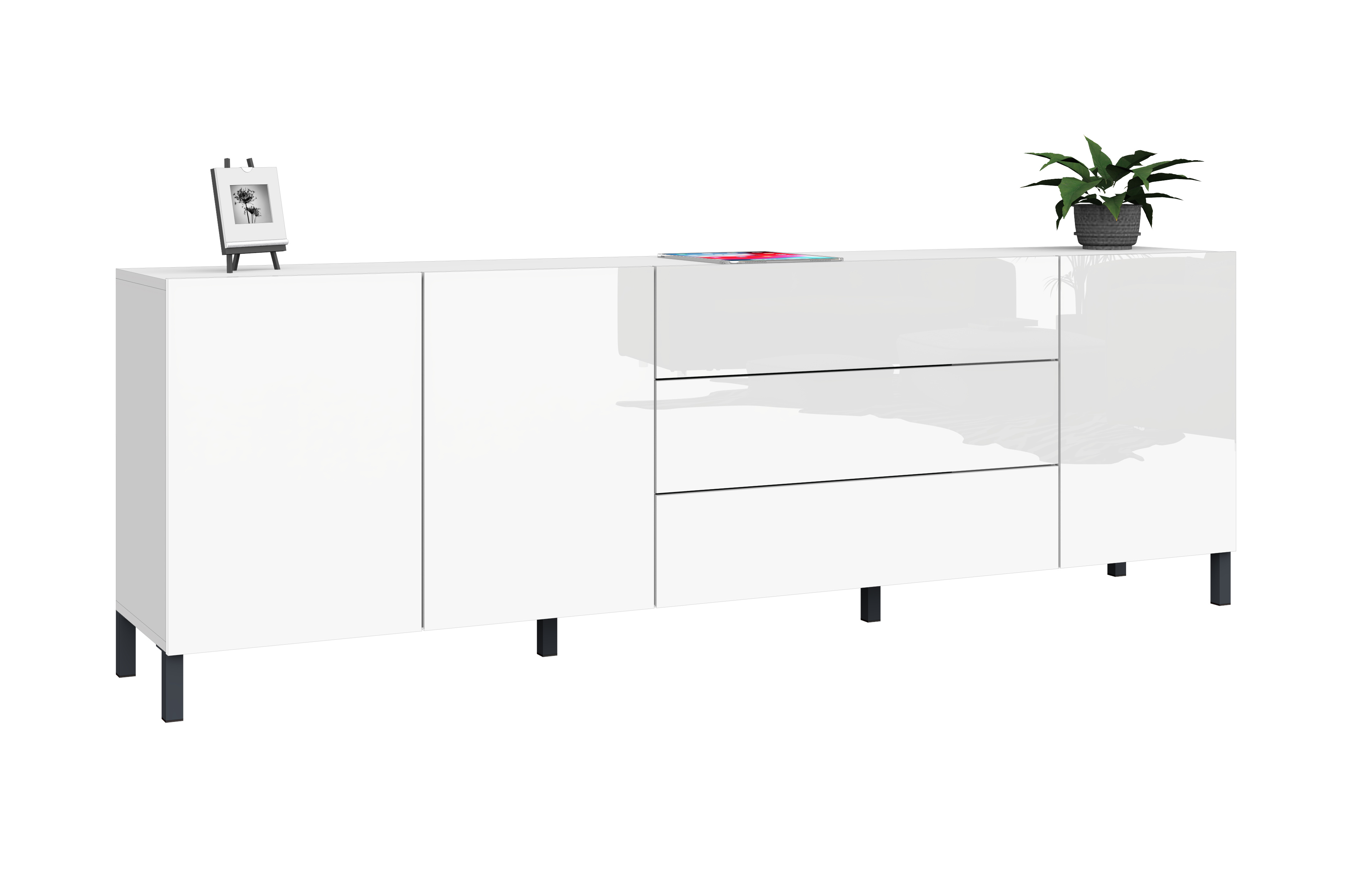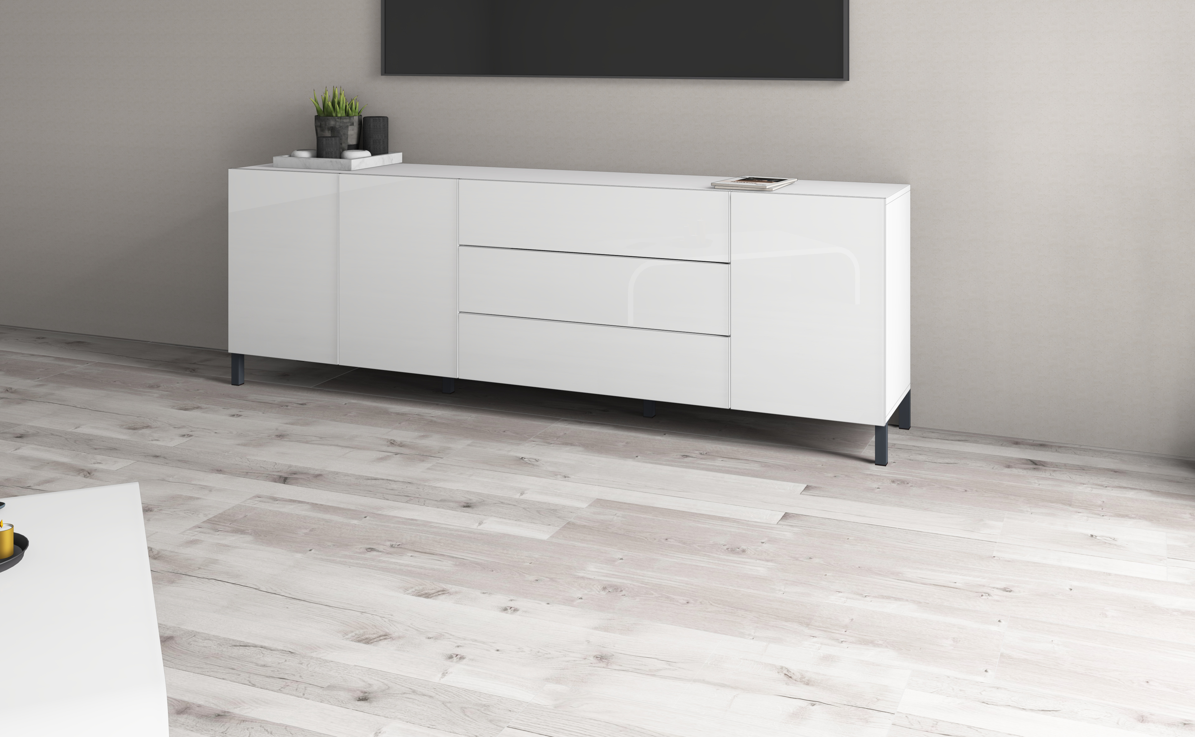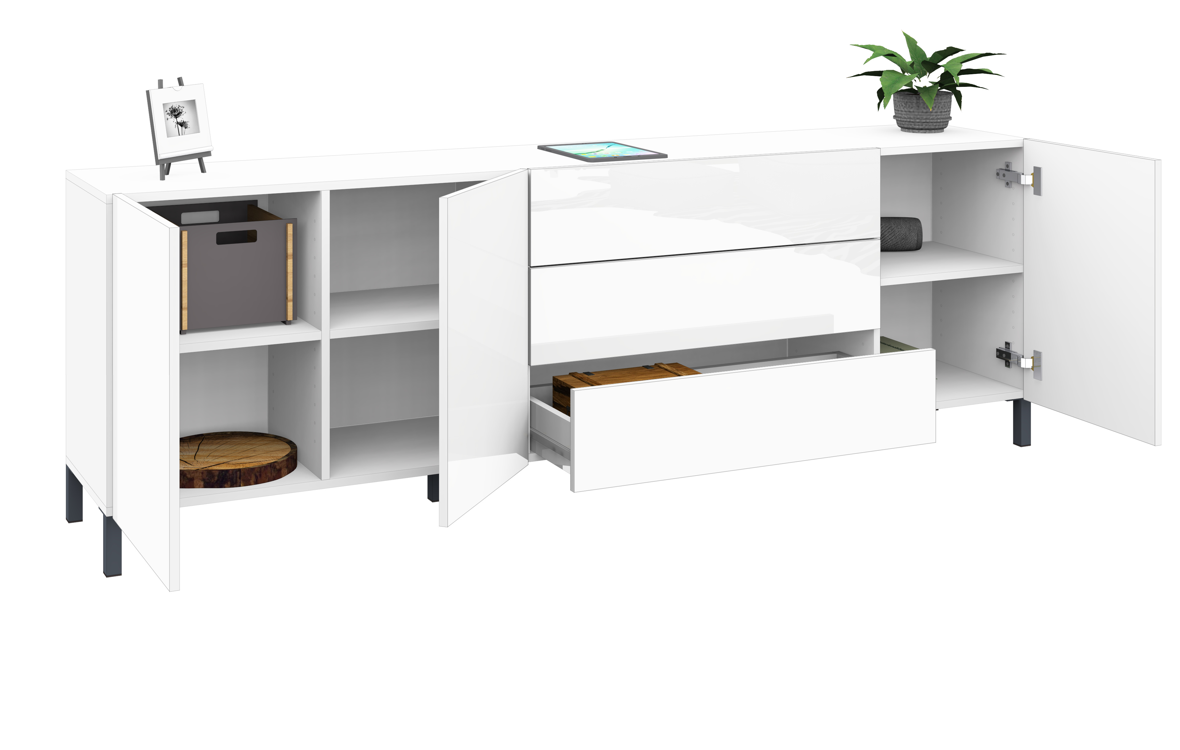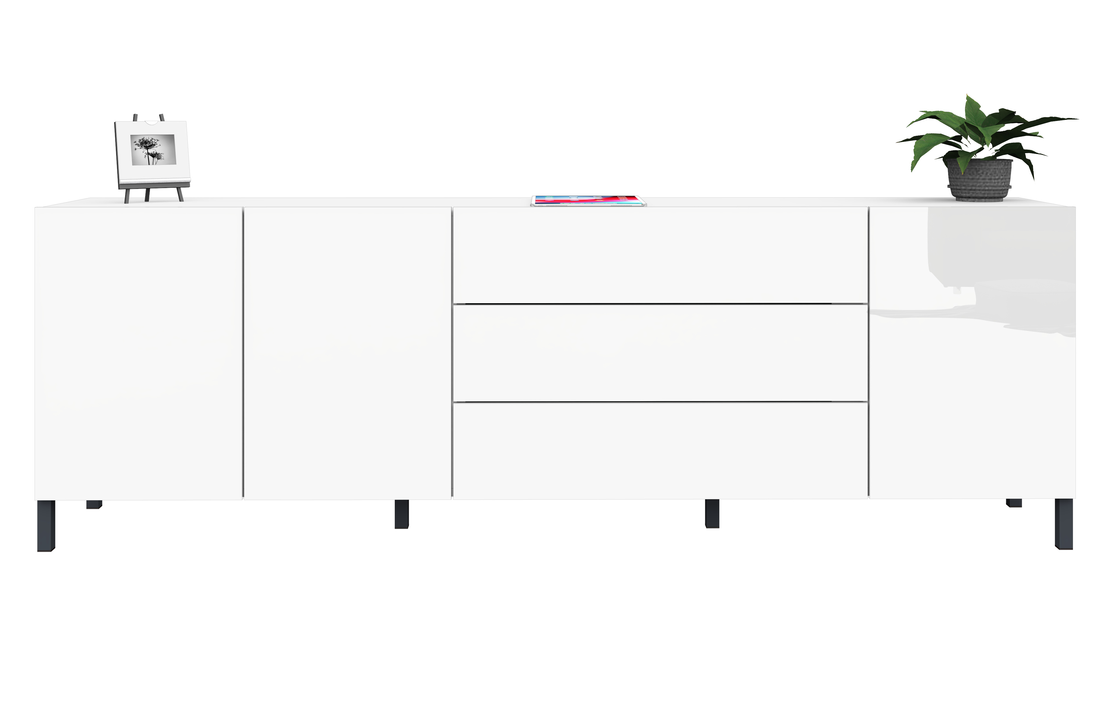 Dank seines kompakten, zeitlosen Designs und der verschiedenen Farbvarianten lässt sich dieses elegante Sideboard harmonisch in jede Einrichtung integrieren. Die hochwertigen Metallfüße dienen dabei als zusätzlicher Eyecatcher.